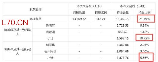 交易后,韩建集团的持股比例将从34.17%稀释至21.79%,而标的方核心股东陈旭辉及其一致行动人合计持股将达16.41%,双方持股差距仅约5.4个百分点。这种股权结构使得控股股东地位相对薄弱,未来若标的方股东进一步增持或与其他股东结盟,可能威胁控制权的稳定性。这也是监管此次重点关注点。