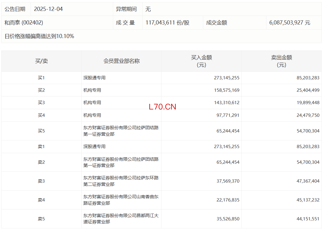 和而泰今日涨停,3家机构专用席位净买入3.30亿元