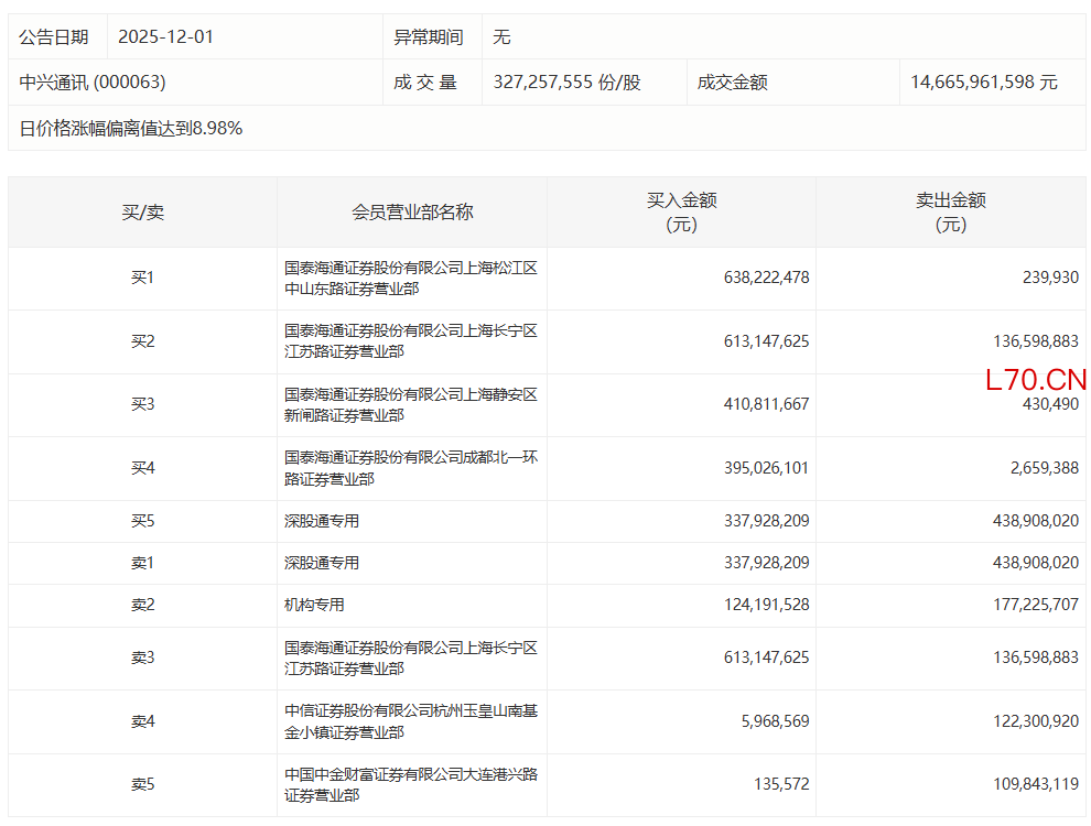 中兴通讯今日涨停,国泰海通上海中山东路大额买入
