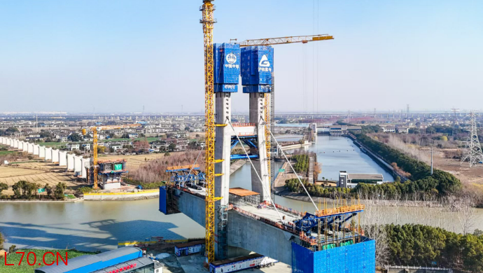 通苏嘉甬高铁全线首座斜拉桥主塔封顶