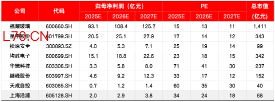表11:重点公司万得盈利预测(其中福耀已发布2025业绩,其余按照Wind一致预期)